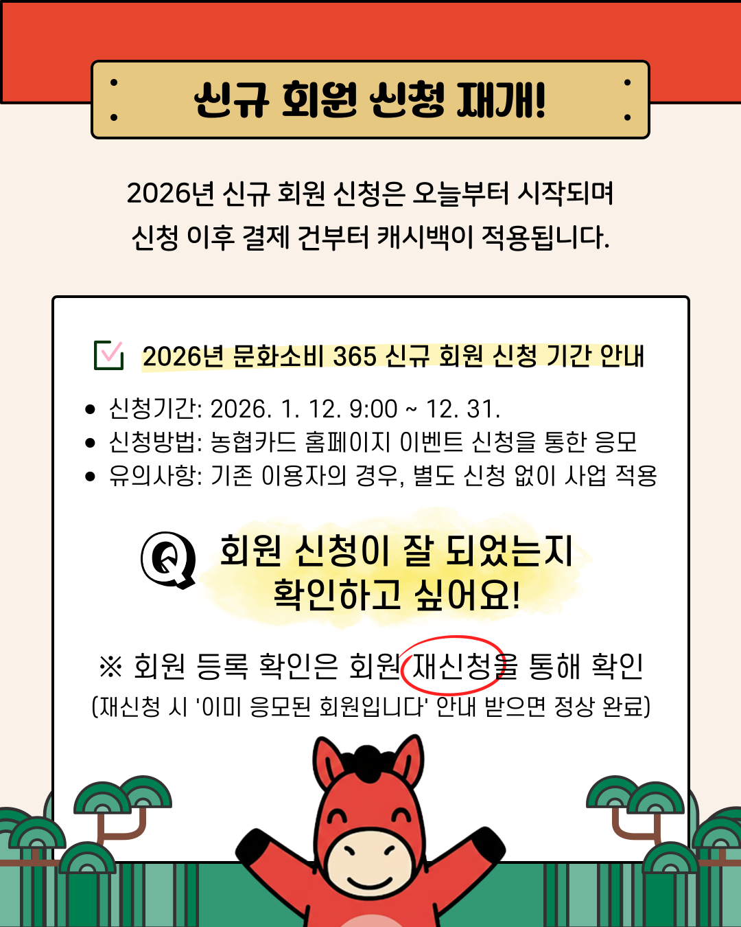 2026년 문화소비 365 신규회원 신청 기간 안내