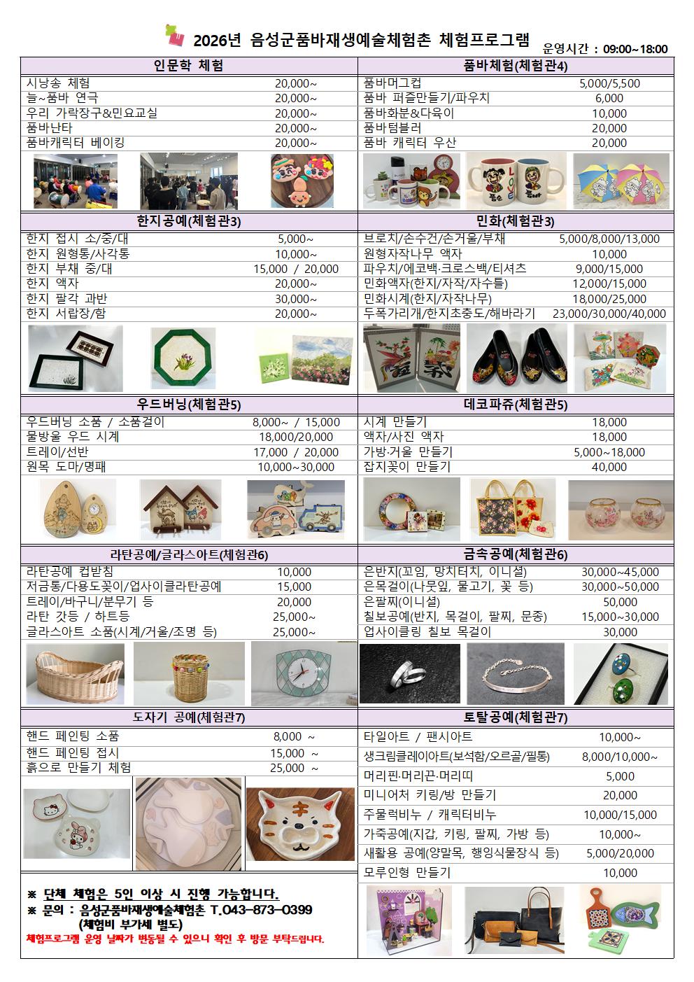 2026년 음성군품바재생예술체험촌 체험프로그램 안내